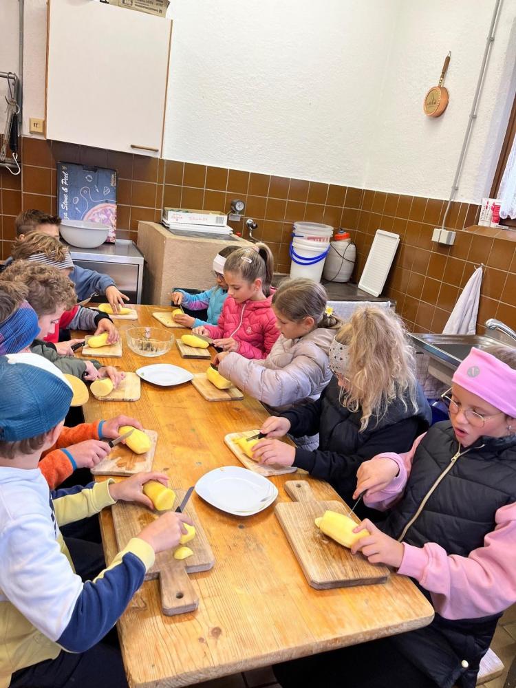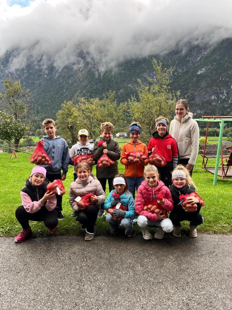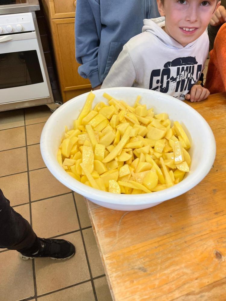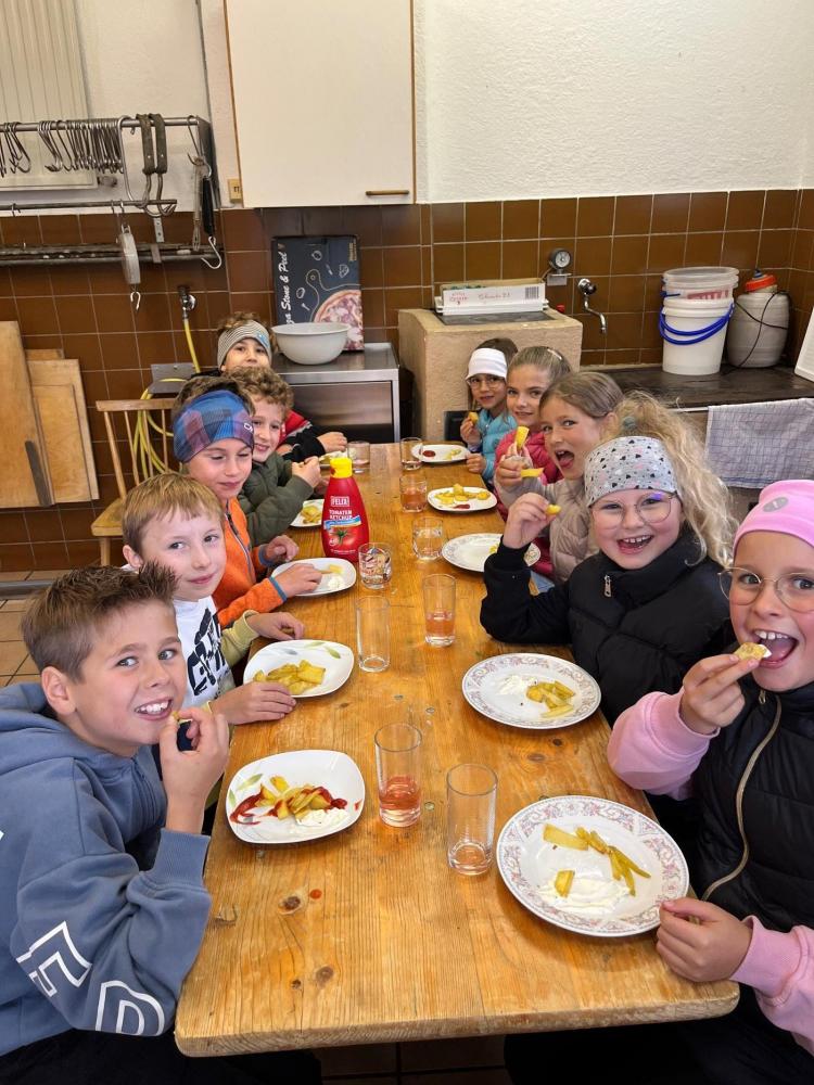 Im Herbst besuchten wir den Bauernhof von Familie Senfter. Schon beim Ankommen staunten wir nicht schlecht über die vielen Obstbäume. Tanja erklärte uns alles rund um die vielen Obstsorten, die auf ihren Obstkulturen wachsen. Wir durften sogar Obst selbst ernten und anschließend daraus einen Obstsalat zaubern. Unser Schwerpunkt des Lehrausgangs war aber die Kartoffel. Tanja zeigte uns, wie die Kartoffel wächst, was beim Pflanzen und Ernten wichtig ist, mit welchen Geräten Kartoffeln geerntet werden und wer die Schädlinge sind. Als Höhepunkt des Vormittags durften wir sogar selber Pommes zubereiten. Jedes Kind durfte mitarbeiten und beim Schneiden der Kartoffeln helfen. Während die Pommes im Backrohr dahin pruzzelten, ließen wir es uns nicht nehmen, zu den Schafen und zu den Schweinen zu schauen. Nach vielen spannenden Beobachtungen ließen wir uns dann gemeinsam die herrlichen Pommes schmecken. Zum Abschluss bekam sogar noch jedes Kind einen Sack mit Kartoffeln mit.